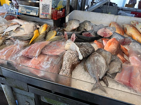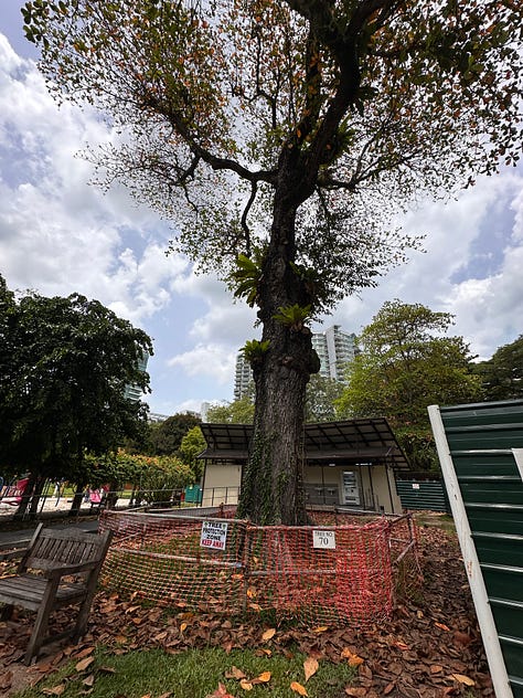 I noticed mangoes and bananas growing in small patches along the sidewalk. I noticed public housing and lush landed homes nestled side by side. I noticed crazy-cool architecture. I noticed a huge tree my sponsor lovingly calls the Faraway Tree, a nod to the beloved books of her childhood. I noticed brightly colored fish laid out on ice in the Marine Terrace wet market.